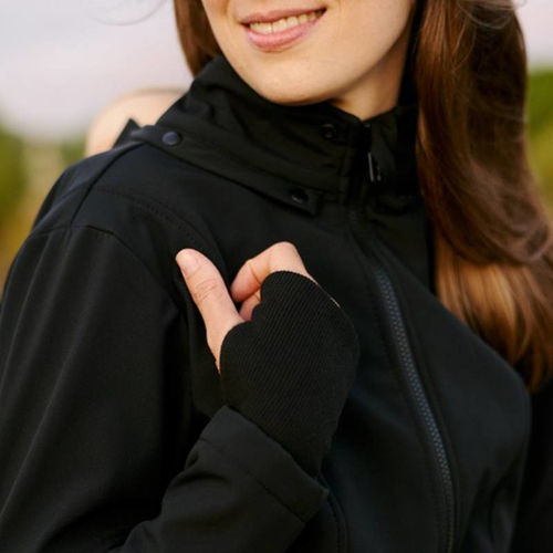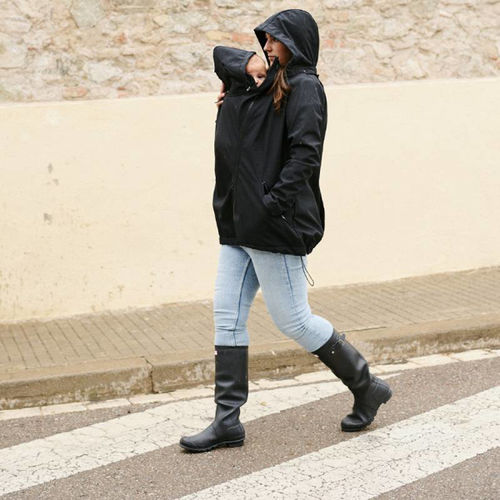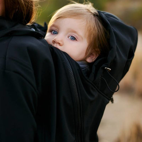 - Abrigo de porteo muy ligero, cálido e impermeable de tejido Softshell de alta calidad y secado rápido.