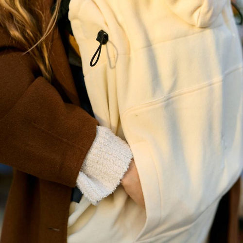 - Ajustable con un cordón elástico para una protección óptima del bebé Bolsillo central para mantener las manos calientes y poder abrazar al bebé.