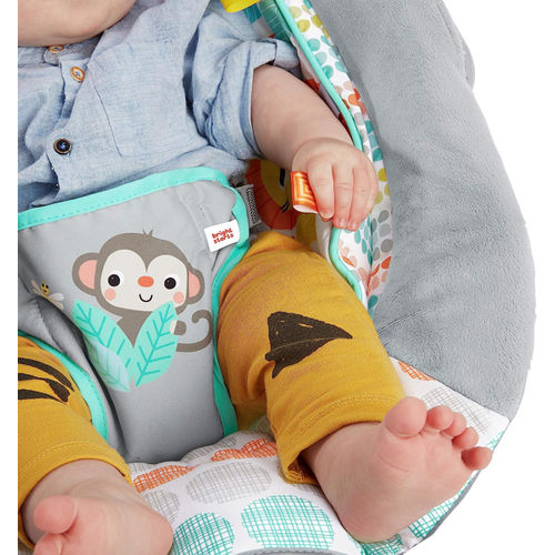 Con las ligeras vibraciones y las 7 dulces melodías, esta hamaca se convertirá en el manto de hojas perfecto en la selva de la diversión. Tu bebé se sumergirá en un ambiente relajante y estimulante al mismo tiempo.
