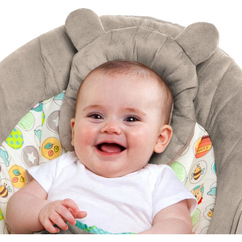 La hamaca Winnie the Pooh cuenta con un apoyacabezas desmontable que brinda apoyo adicional a los niños mientras juegan y se divierten. Además, ofrece vibración suave y siete melodías divertidas que mantendrán a tu bebé entretenido durante horas.