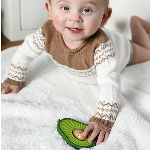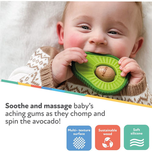 Su diseño ligero y ergonómico es perfecto para las manitas pequeñas de tu hijo, facilitando un agarre cómodo y seguro. Pero eso no es todo, este mordedor también tiene un componente educativo. ¡Es una excelente herramienta para enseñar a tu bebé sobre las frutas! ¿Sabías que el aguacate es una fruta y no una verdura? Con este mordedor, puedes introducir a tu pequeño en el emocionante mundo de las frutas mientras alivia las molestias de la dentición.
